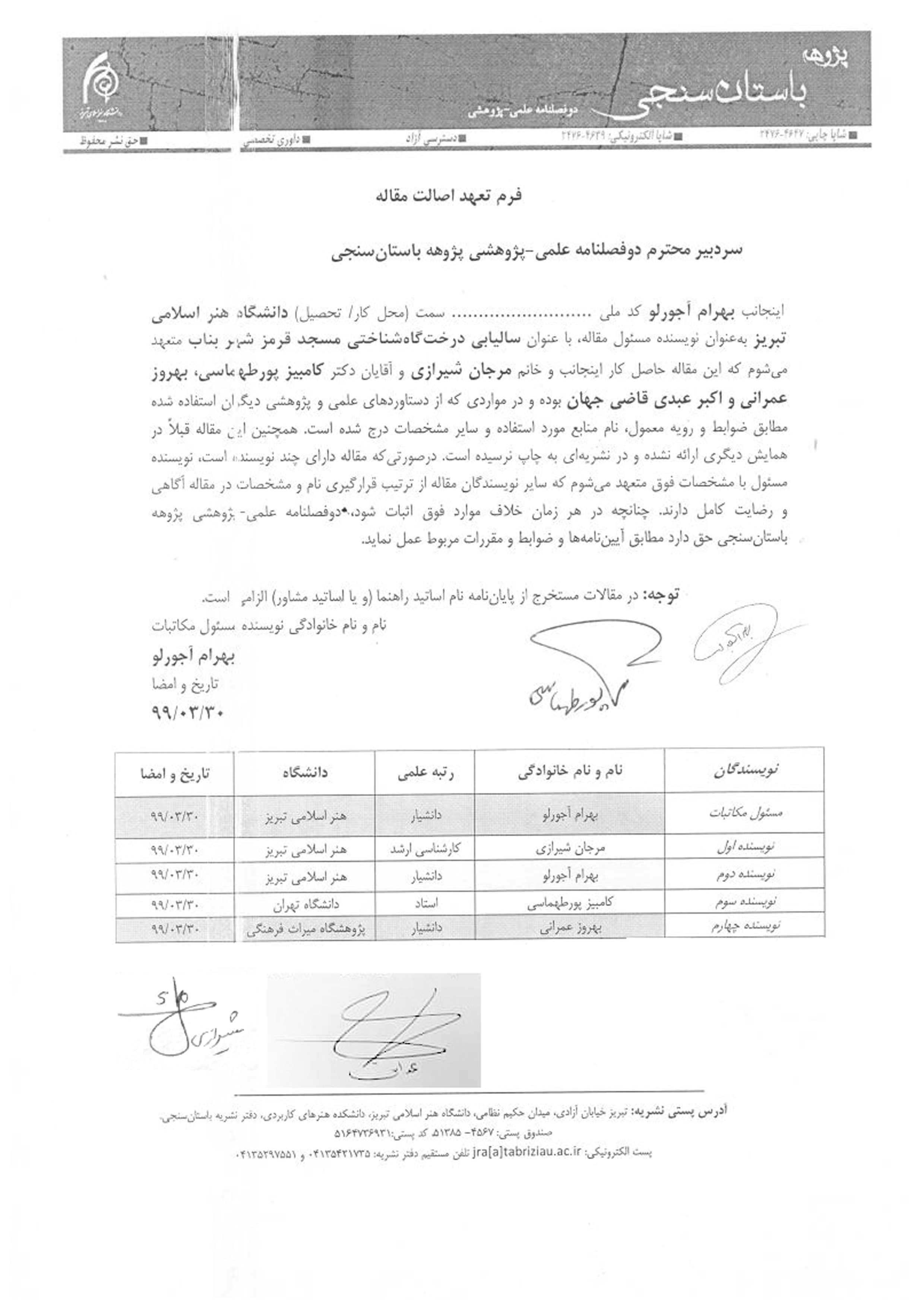 1- Faculty of Cultural Materials Conservation, Tabriz Islamic Art University, Iran